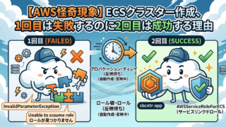 AWS ECSクラスター作成時、1回目はエラーになるのに2回目は成功する謎を徹底解説!原因は「サービスリンクドロール(AWSServiceRoleForECS)」の暗黙の自動作成と、IAMの最終一貫性によるタイムラグにあります。インフラ構築時の「仕様通り」の挙動を知って、慌てず対処しましょう。