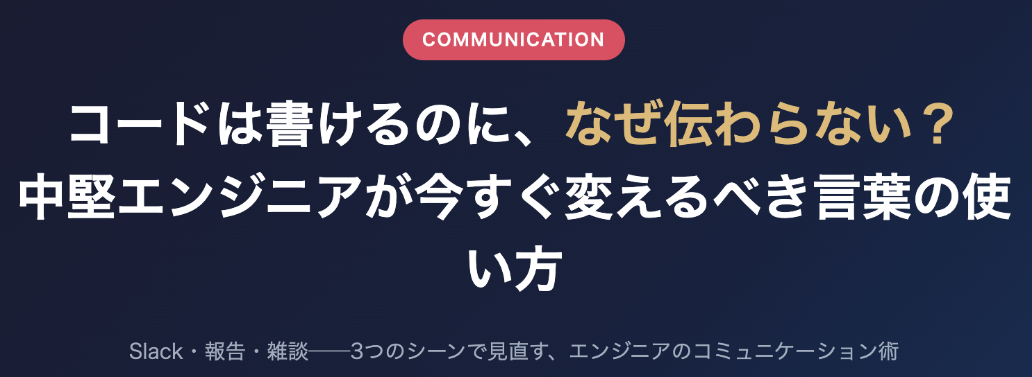 中堅エンジニアになると、純粋に手を動かすだけでは済まなくなります。上司への報告、ステークホルダーへの説明、後輩とのやり取り。「言い方ひとつ」で仕事の進み方が大きく変わる局面が増えていきます。