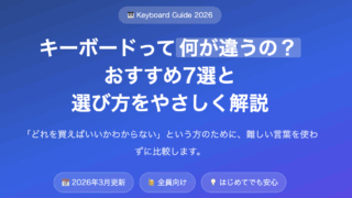 キーボードって何が違うの?おすすめ7選と選び方をやさしく解説【2026年最新】 キーボードの選び方を初心者向けにやさしく解説。メカニカル・静電容量・ホール効果など種類の違いから、HHKB・REALFORCE・Keychron・Logicoolなど人気モデルまで、2万円台〜4万円台のおすすめ7選を紹介します。 2026.03.26