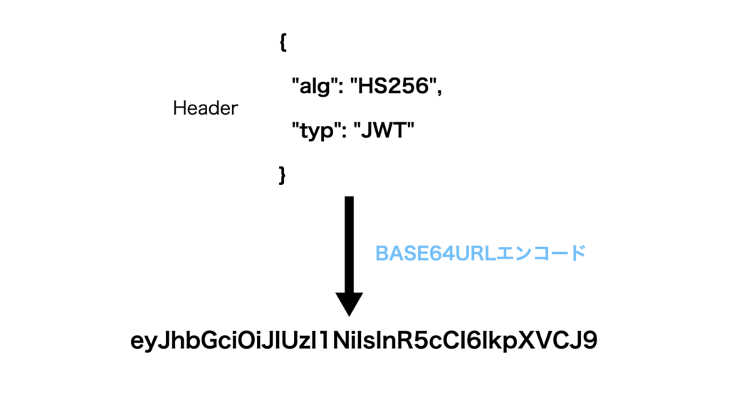 アルゴリズム(alg)とタイプ(typ)を定義し、HeaderのBASE64URLエンコードを作成→encoded_Header